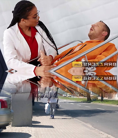 Dark-hued booty Nurse was fucked on the roof by a BBC doc