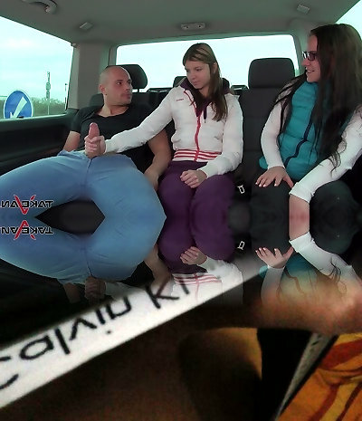 Marvelous cash sluts flashing their titties for money in the limo