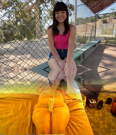 Teen with tiny tits and nice donk Mochi Mona shows off creampied vagina