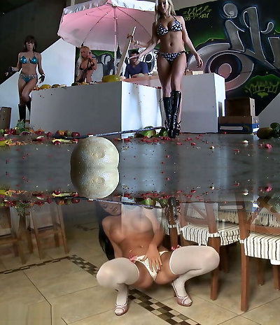 Salacious cuties dancing provocatively in a saucy bikini party