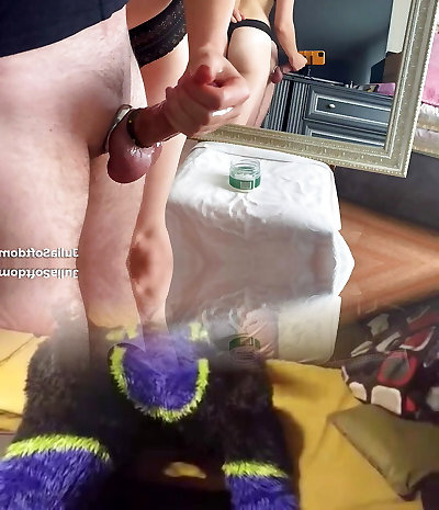 Dominant wife wrings my balls and jacks me off until I cum