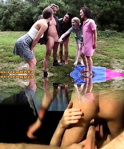 Brit cfnm babes wanking dick outdoors