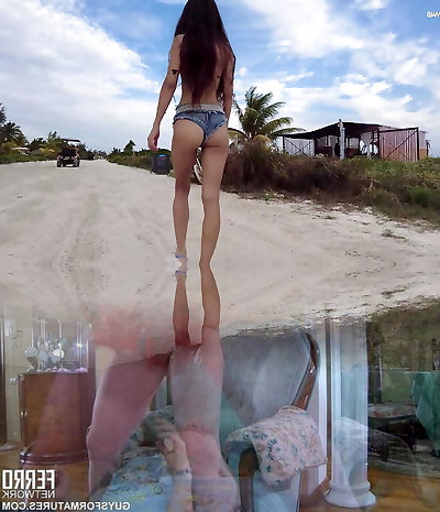 Naked hotty in white stockings Sanya Semashko does bridge in molten way
