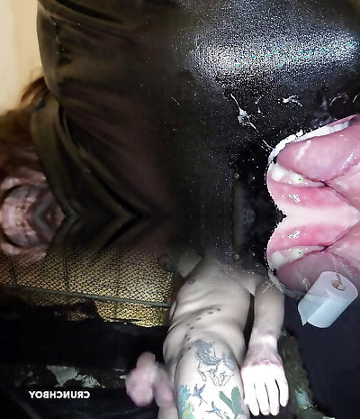 Jizm on her Wet-Look Leggings Ass after Pummel - German Amateur