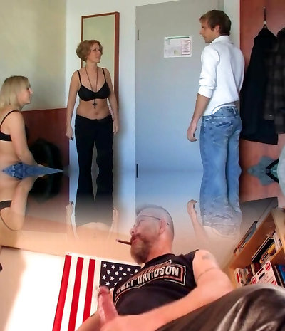 Sloppy Step Fathers Snoop On Their Stepdaughters And Catch Them Vigorously Kissing Each Other