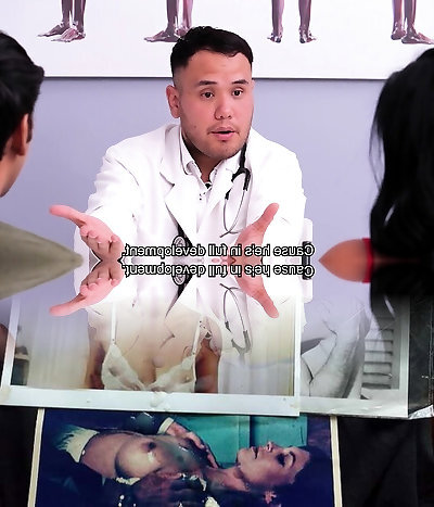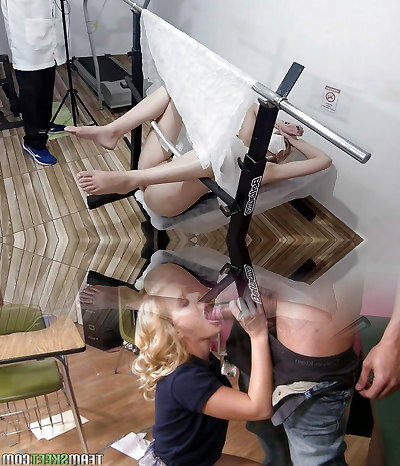 German Doctor and Teen Secretary seduce Turkish Girl to FFM 3Some on Gyno Stool