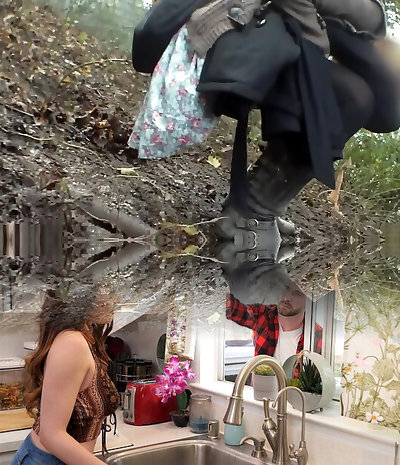 stepsister milks in pantyhose and boots, squirts in pantyhose