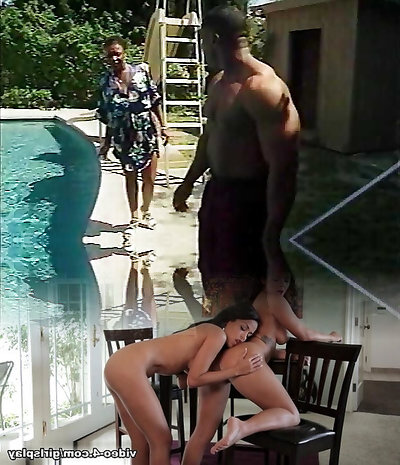 latina brunettes dance and grope each other's poons by the pool GGmansion