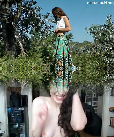 Erotic nude solo girl outdoors has a ideal shaved pussy