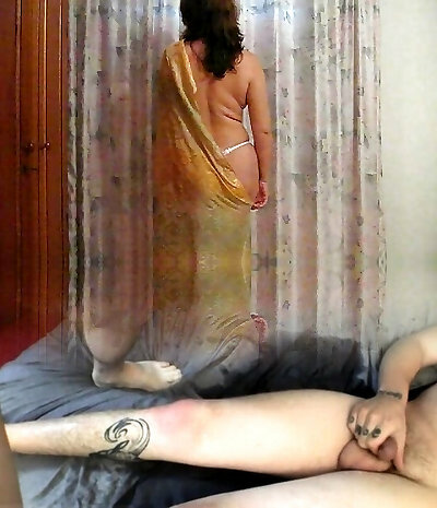 Super hot and sexy desi wife taunting and pressing her huge orbs