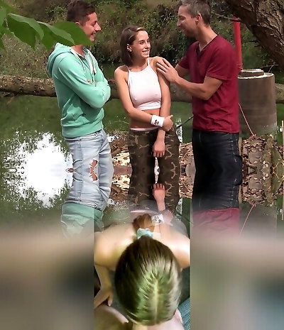 Hardcore outdoor MMF threesome with Anabelle torn up on a raft