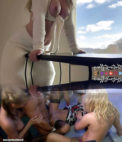 A Blonde Girl with Immense Fake Juggs Getting Drilled by Two Humungous Beef Bayonets
