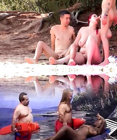 Voyeur on public beach. Sex with nymph with silicone Boobs