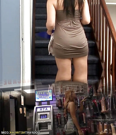 Making grimaces sexy brunette babe gets nailed doggy fashion