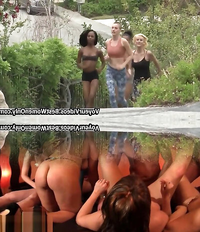 Horny Lesbian Group Babes In Yoga Ravage Orgy