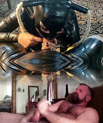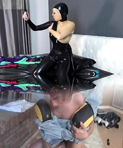 Demonic slut wanks on cam wearing latex costume from head to toes