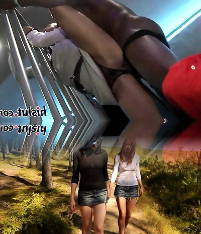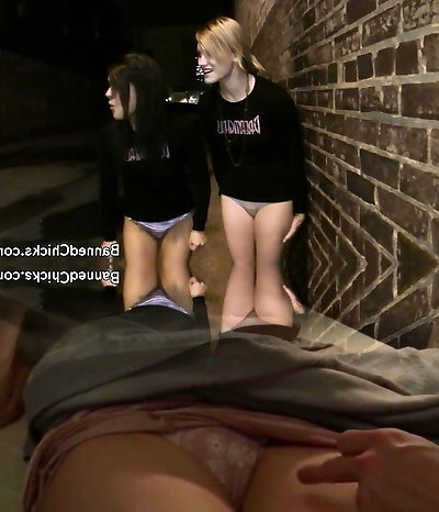 Cute blonde and pretty black-haired get hotly fucked in public