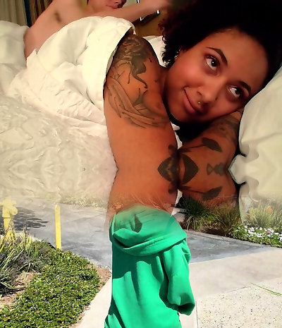 Ebony super-bitch with a bubbly ass walks into hunk's bedroom to gt fucked