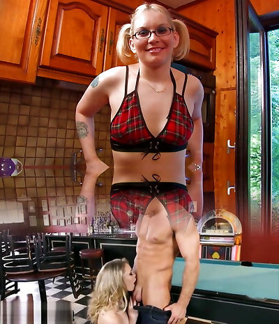 Horny blond girlfriend shares husband with clit pierced blondy in stocking