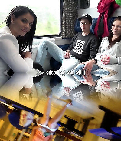 Cute brunette with big natural funbags loving a hardcore FFM threesome