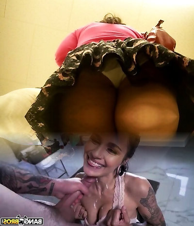 Diminutive Upskirt Teasing Fat Cock Gaping Pussy Wide Open Close Up