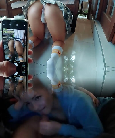My hot stepsister wearing college miniskirt is stuck under the chair and i can't resist the opportunity to pummel her